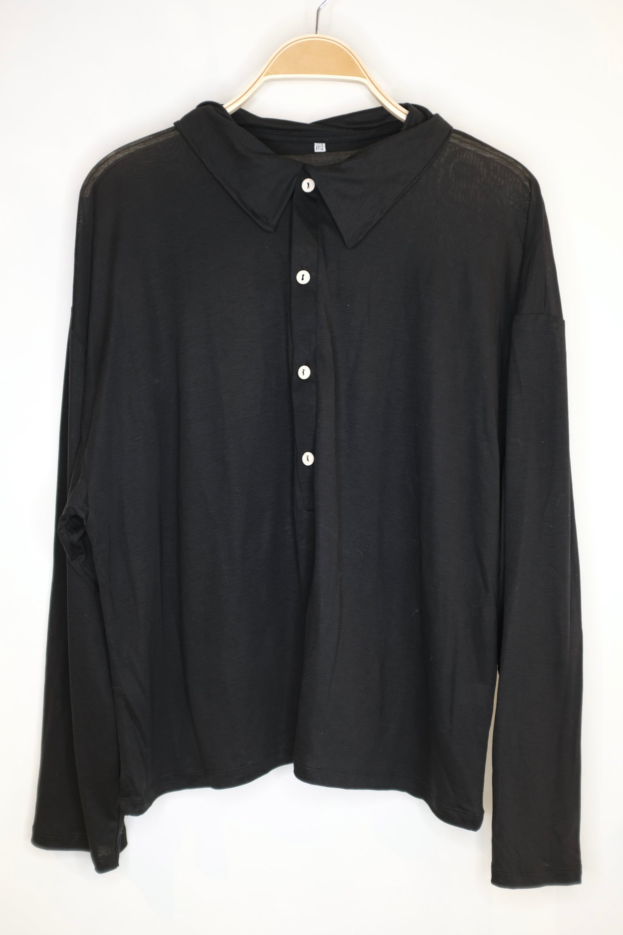Pre-Loved Black Crane Loose Top / Light Stone / Size Large